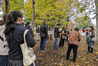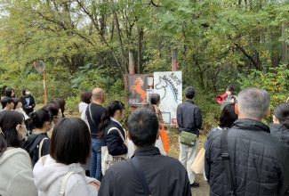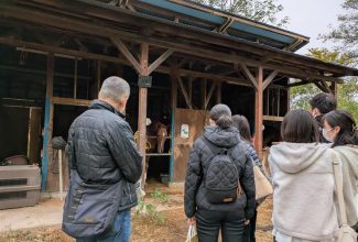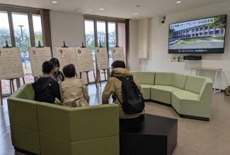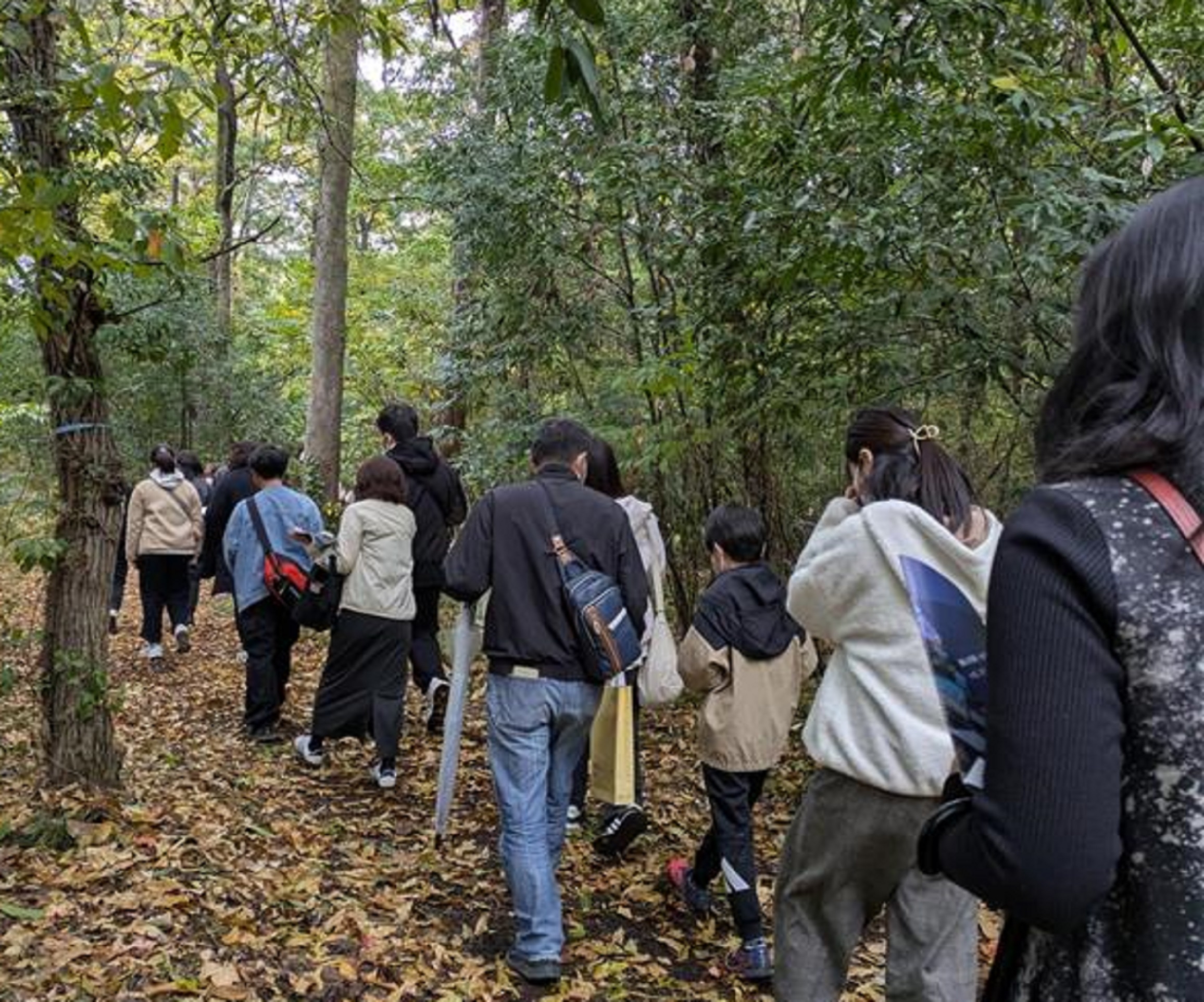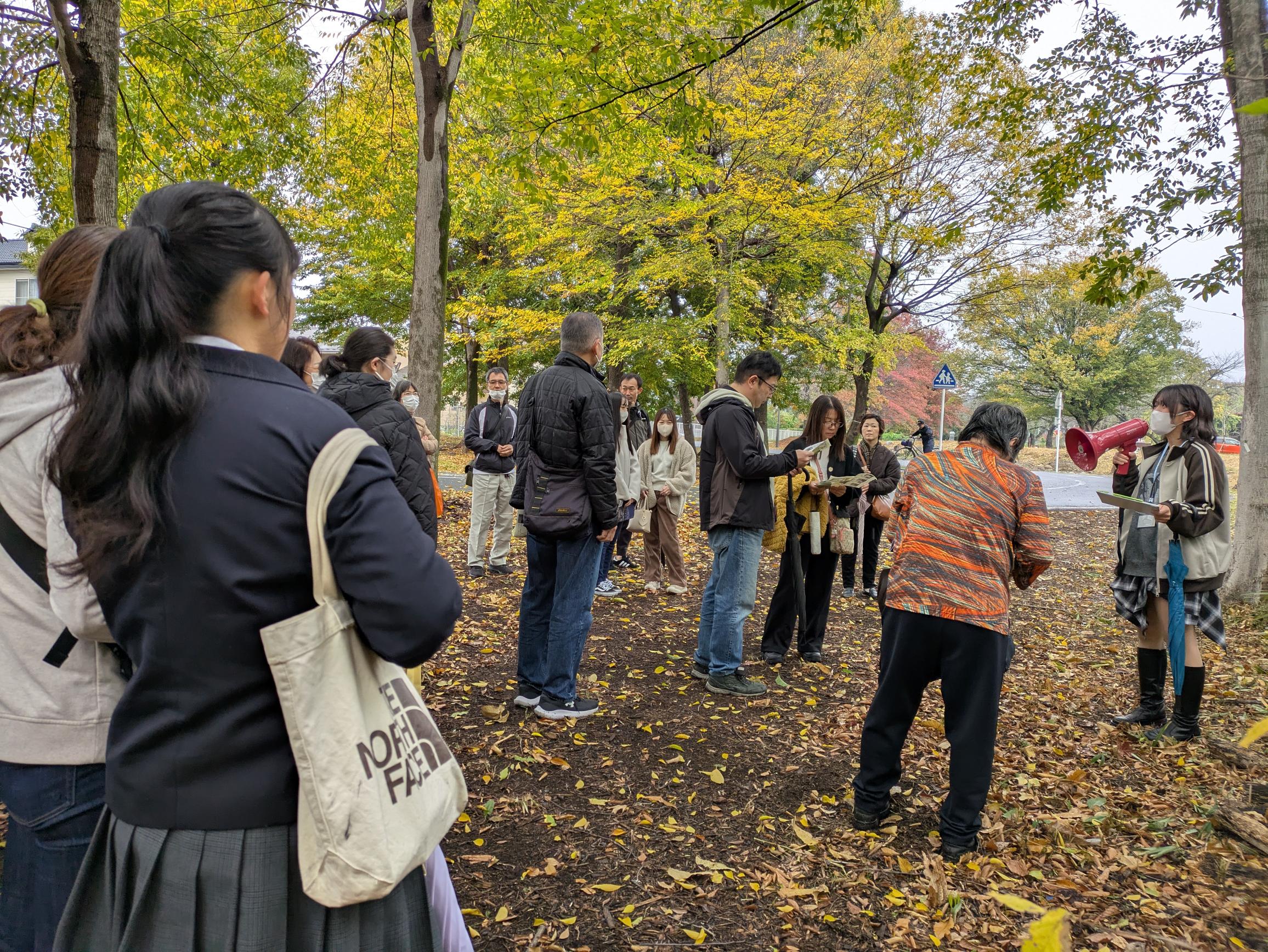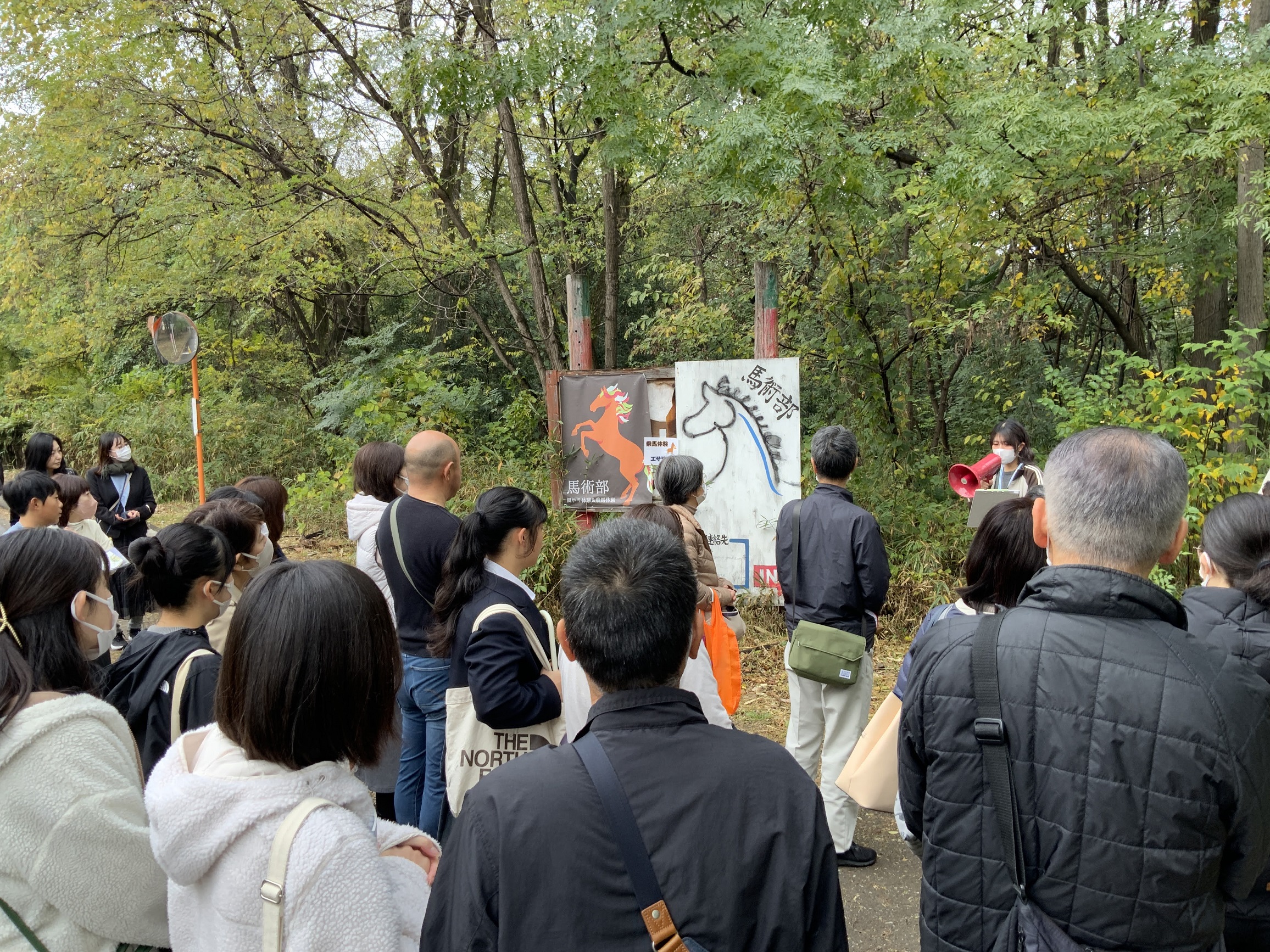 また、在学生企画としてキャンパスツアーを開催し、紅葉深まる荒牧キャンパス内を御案内しました。あいにくの雨模様でしたが、多くの方に御参加いただきました。その後、懇談会も行いツアー参加者と在学生の交流を深めました。