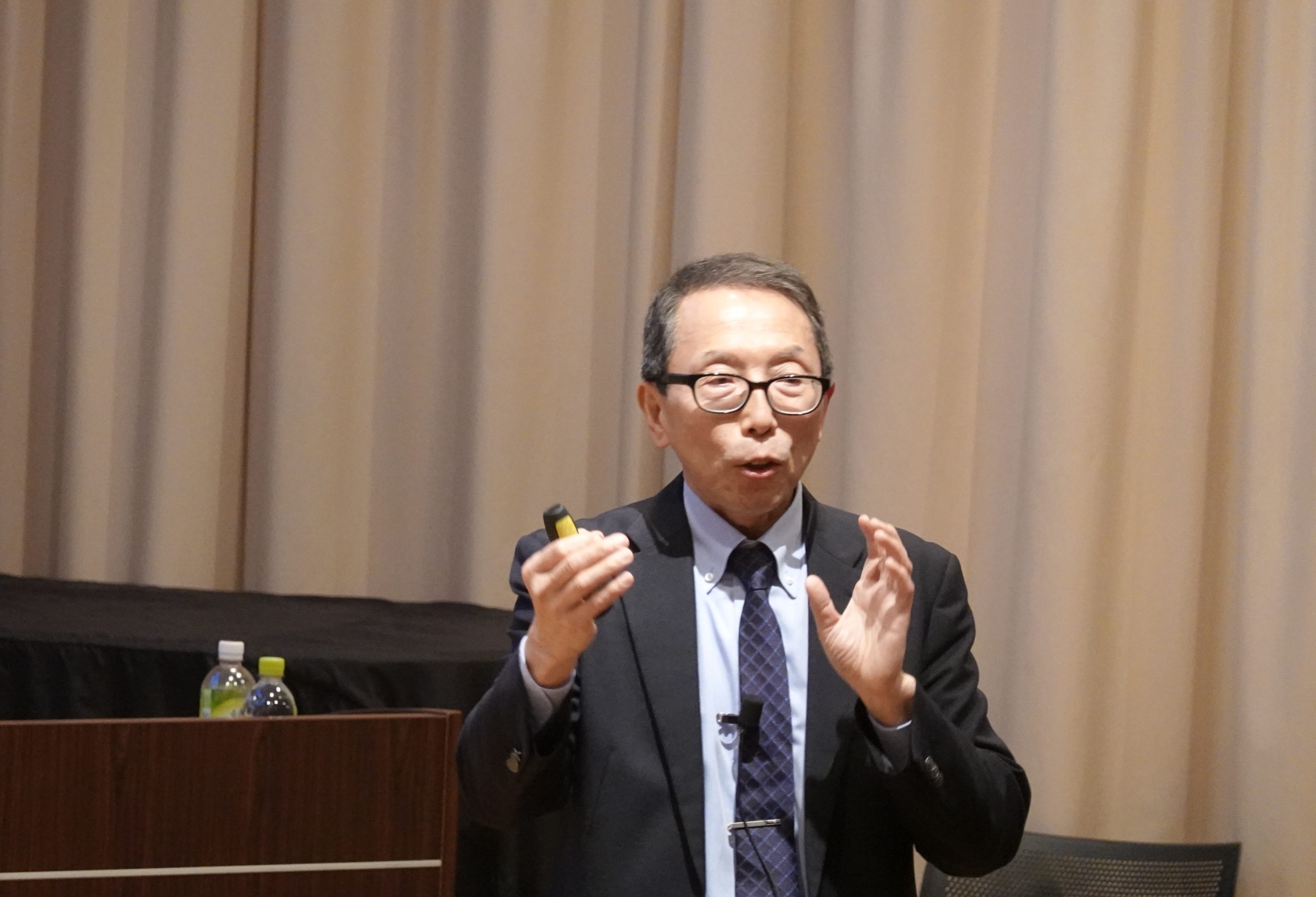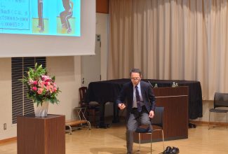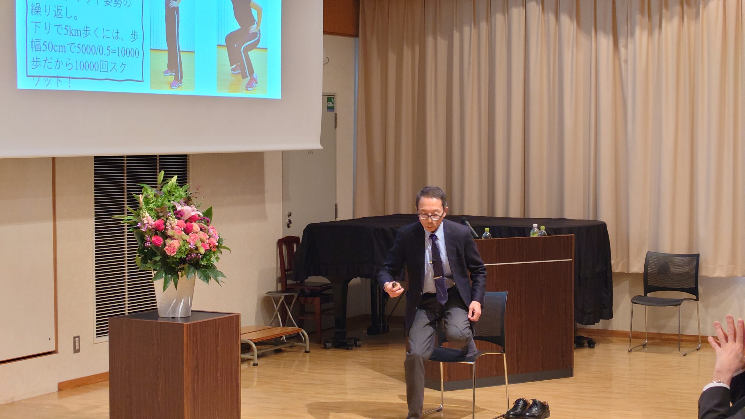 今回は、齋藤繁理事(病院担当理事及び医学部附属病院長)から、「大学病院から発信する健康増進法:群馬県の山を歩いて健康長寿を満喫する」と題した講演が行われました。講演では、群馬県の恵まれた自然環境の紹介に加え、近年の山岳遭難の傾向や、登山中に注意すべき健康管理についてのお話がありました。参加者は、配られた風船を使って気圧の低い山での呼吸法を体験するなど、楽しみながら学びを深めていました。