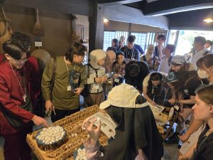 This year, 26 students from universities in Poland, Hungary, Indonesia, Malaysia and Taiwan participated. Alongside Gunma University students, they visited various sites symbolizing Gunma Prefecture, including the Kiryu-ori Textile Reference Museum, Akagi-style traditional houses at the Gunma Insect Forest, Tomioka Silk Mill, and Konnyaku Park. They experienced activities such as indigo dyeing and making konnyaku jelly, and in the university, they toured research laboratories in science and technology, as well as an autonomous driving research center. They also attended lectures on basic Japanese language, Gunma’s history, and haiku poetry, and took on their first calligraphy experience.