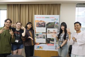 Based on these five days of activities, the participating students, acting as members of a fictional advertising company, brainstormed how to promote Gunma’s tourist attractions in English. They created and presented flyers in groups, effectively culminating the program. Some groups also produced short videos and social media content, which they showcased at the end. Despite the intense heat throughout the activities, the students expressed positive feedback, such as “I made friends from various countries, including Japan.” ”It was more fun than Tokyo.” and “I learned a lot about Japan and Gunma, and I want to come again.” The flyers will be on display at the atrium lounge on the 2nd floor of the University Hall at the Aramaki Campus until the end of September.