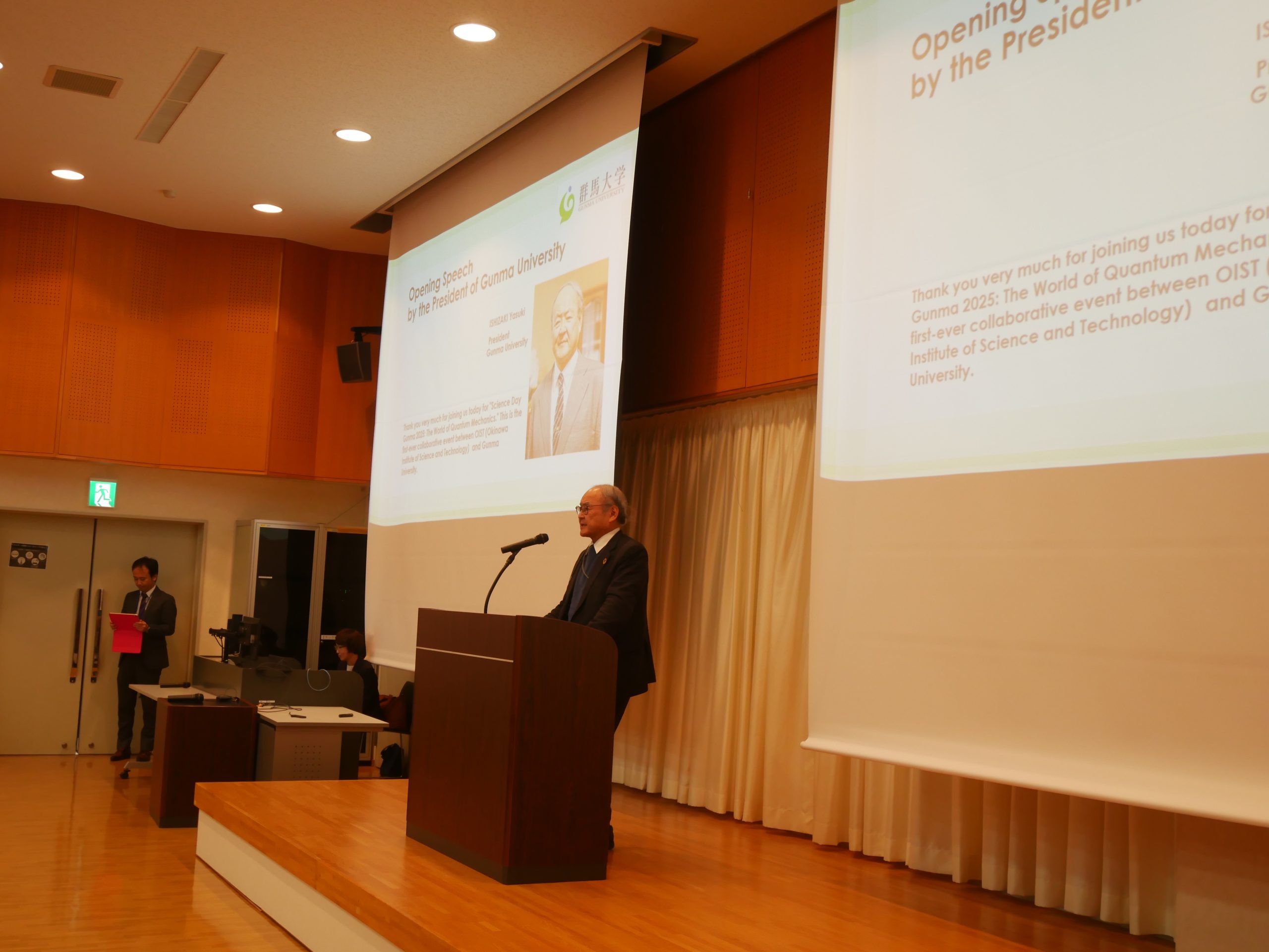 On October 28, 2025, which coincided with Gunma Prefectural Day, Gunma University (GU), in collaboration with the Okinawa Institute of Science and Technology Graduate University (OIST), held the event “Science Day Gunma 2025 – The World of Quantum Mechanics” at the Aramaki Campus. The event aimed to foster interest among young generations in cutting-edge scientific research and was attended by over 50 participants, primarily high school students.