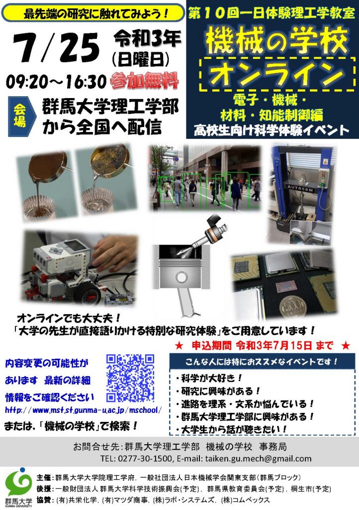 - 理工学部・大学院理工学府「高校生向けイベント 一日体験理工学教室「機械の学校オンライン」を開催します(7月25日(日))」