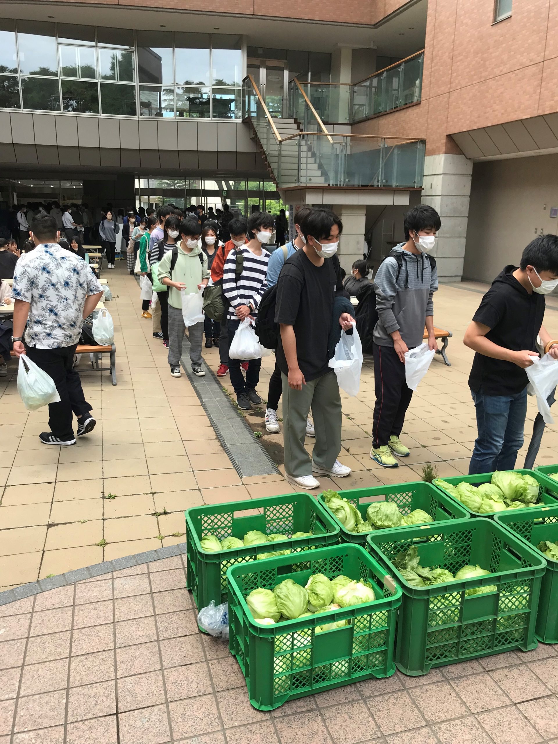 本日無料配布していただいたのはレタスで、たくさんの学生が集まり、レタスの食べ方や保存方法などもお聞きしながら多くの学生の手へと渡って行き、あっという間に終了しました。