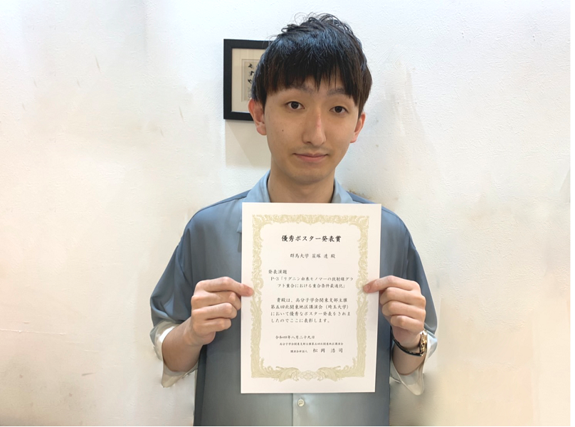 高分子学会関東支部 第5回北関東地区講演会において、大学院理工学府物質・生命理工学教育プログラムの博士前期課程1年の韮塚透さんが優秀ポスター賞を受賞しました