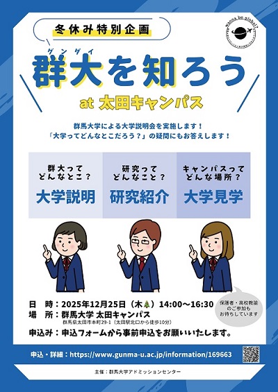 - 14:00~14:30 『群馬大学をまるっと知る!』説明会
