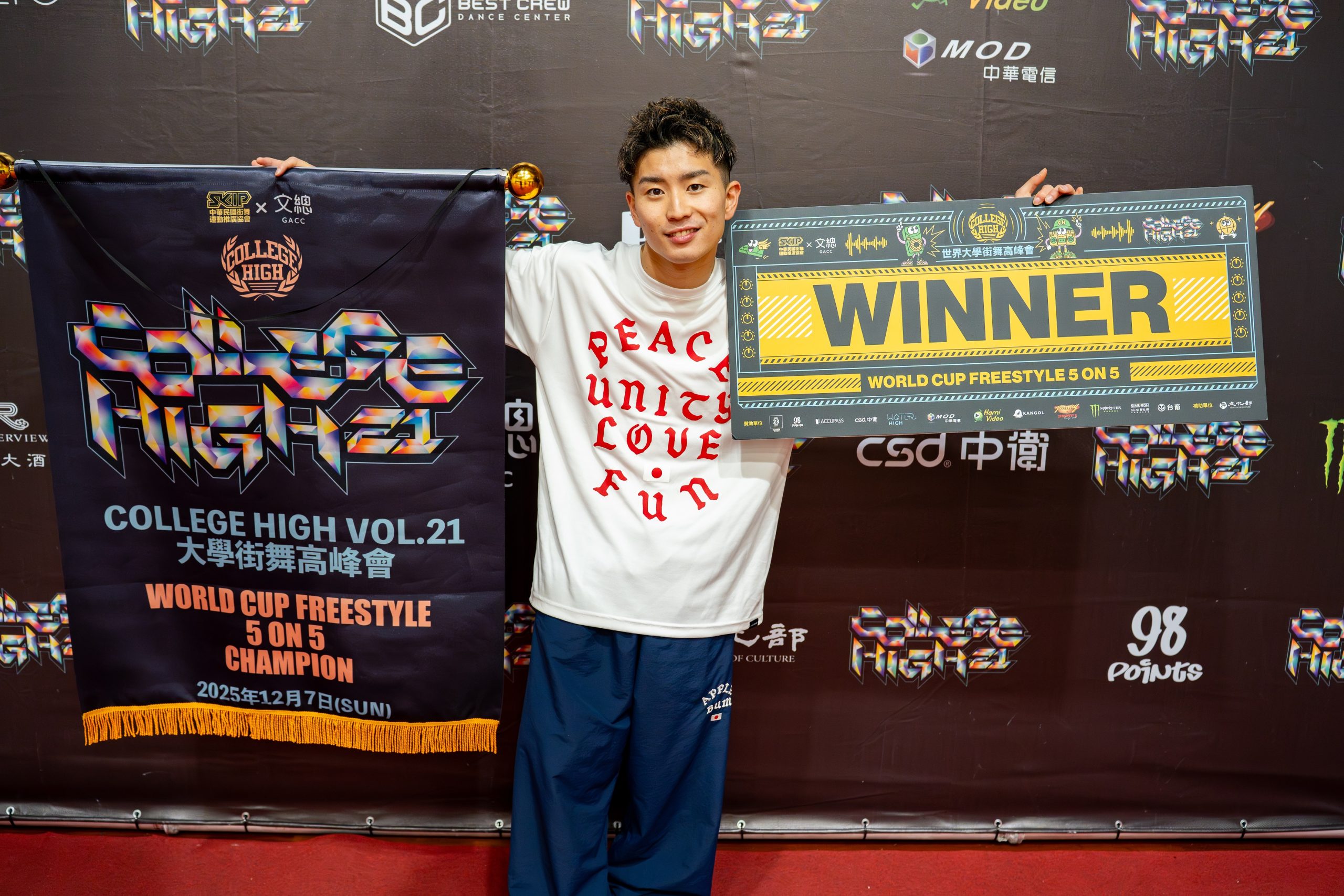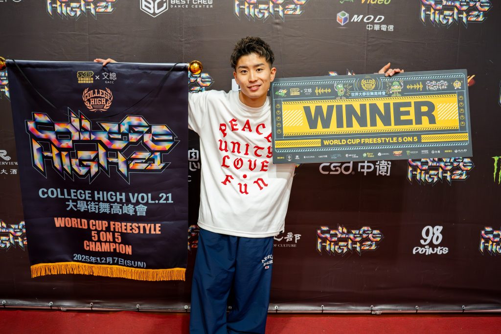 2025年12月7日(日)、台湾にて開催された 「大学ストリートダンスワールドカップ 2025」 において、共同教育学部保健体育専攻4年の内山怜音さんが日本代表チームの主将を務め、世界二連覇を達成しました。