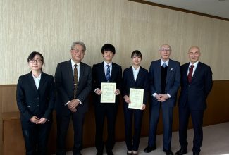 マイスター育成プログラムは、高度な分析装置を実際に用い、分析に関する本質的理解の獲得と高い測定技術力と解析力の習得を基に、複合的な問題解決能力を持った学生を育成することを目的としています。このたび、所定の課程を修了し、認定試験に合格した学生2名に対し、2020年12月9日(水)に荒牧キャンパスにおいて認定証授与式が行われました。